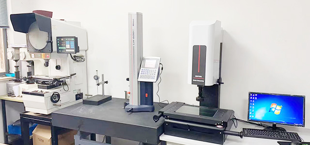 公司引進(jìn)1臺(tái)雷頓三坐標(biāo)行程1500*1000*800,2臺(tái)三豐高度規(guī)精度0.001 ,2臺(tái)三豐2.5次元精度0.001,2臺(tái)三豐投影儀精度0.001,10把三豐數(shù)顯千分尺精度0.001,3臺(tái)洛氏硬度計(jì)等設(shè)備。